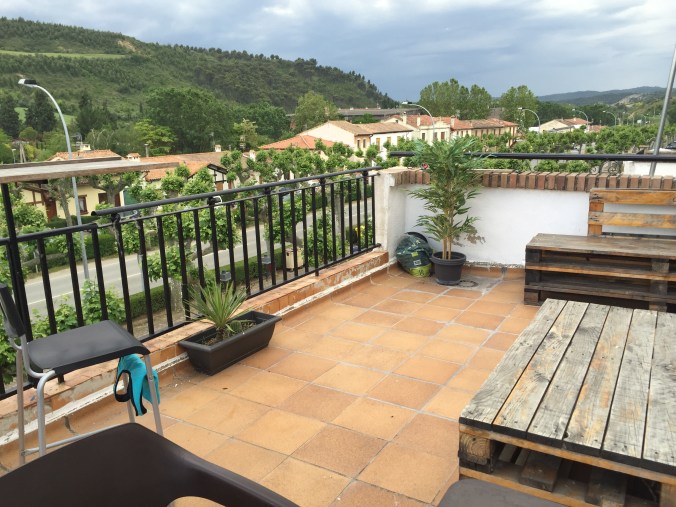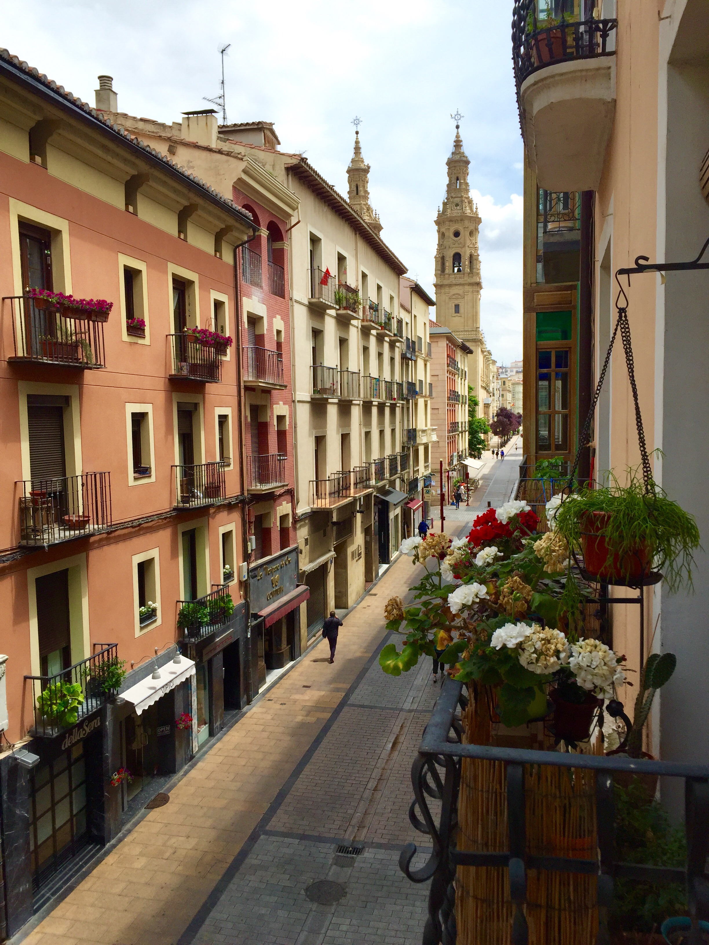 It was a pretty easy walk to Logroño after Viana, so the time moved by quickly. We checked into an albergue recommended by another pilgrim and are very happy with it. Our room has been completely redone and everything smells new and clean. It’s a 10 person room and currently I’m the only one not from Germany. This feels like some of my work trips. 🙂 The view from here is great…