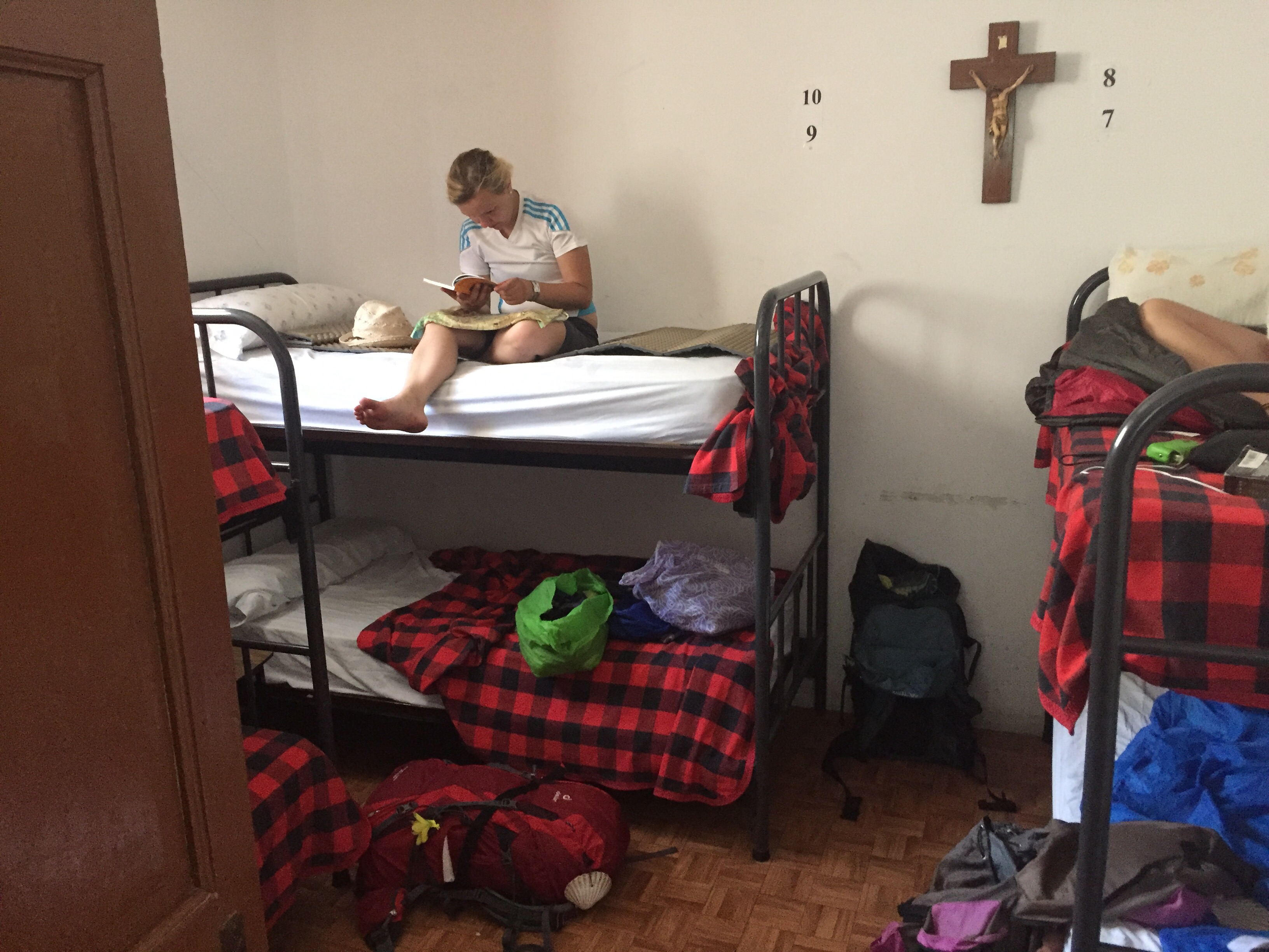Tomorrow, if we are lucky, we may get to stay at an albergue with a swimming pool! Anything will probably be better than tonight’s sleeping quarters. 🙂