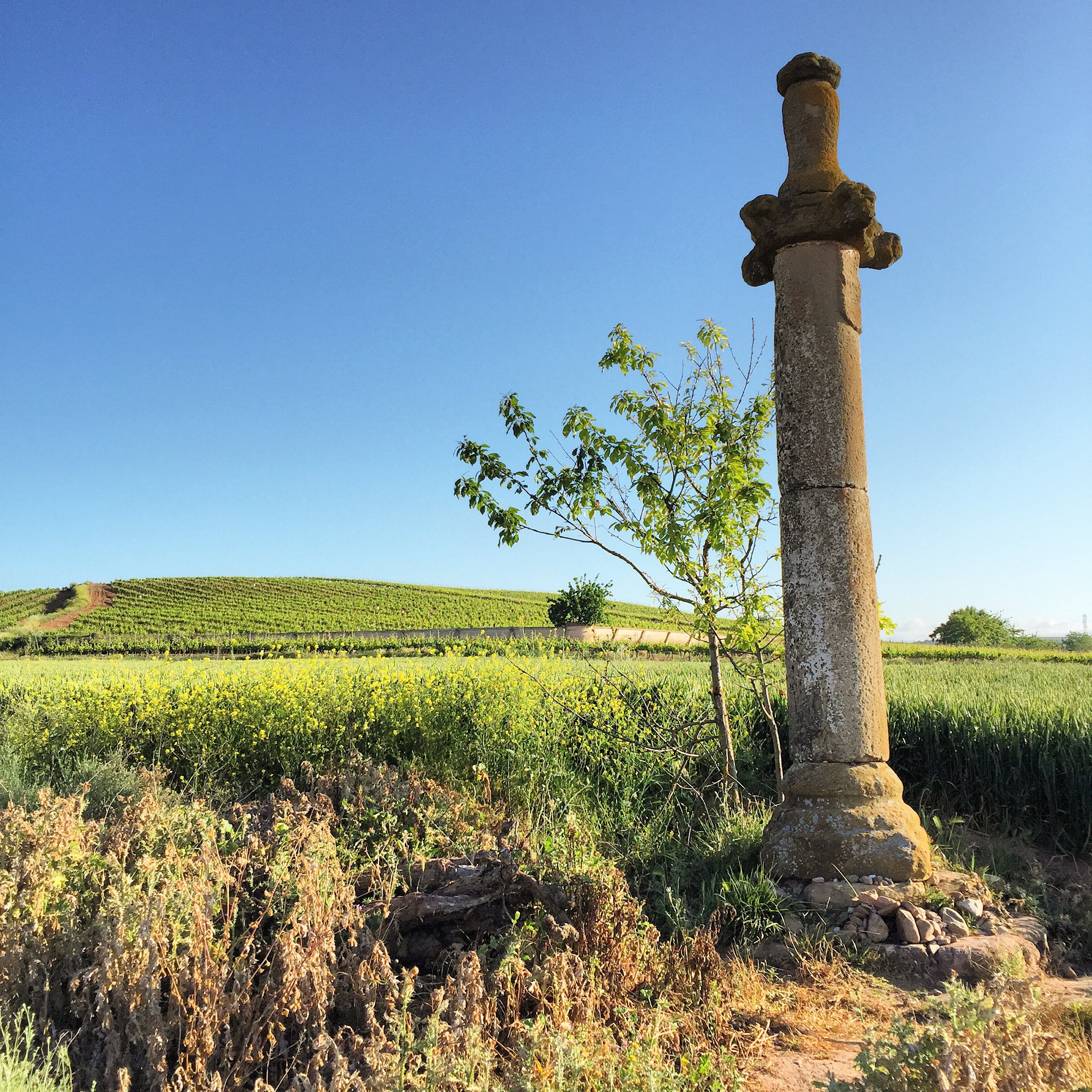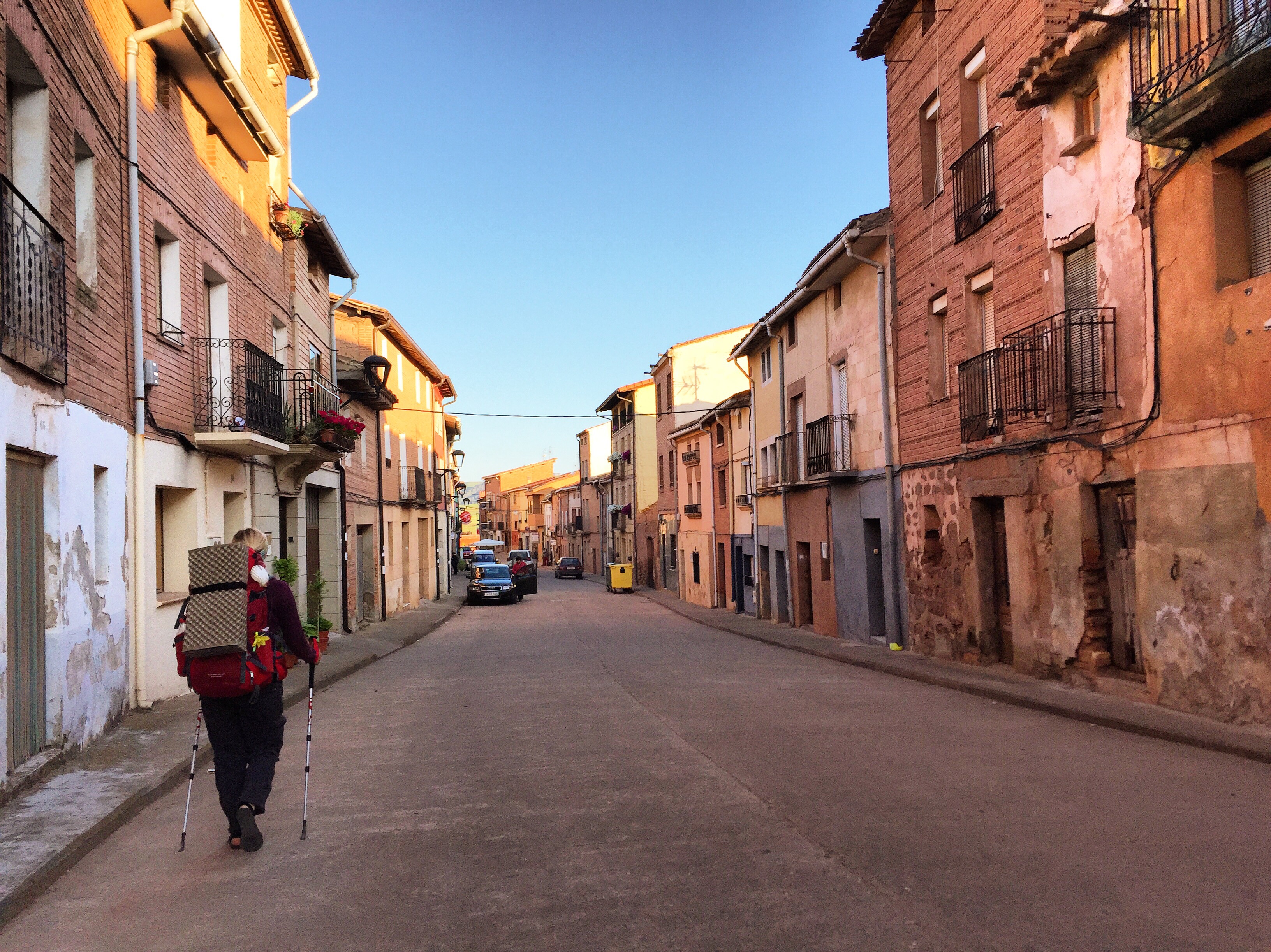 Despite some minor knee pain, today was a good day. The sunrise was beautiful as we left Najera.