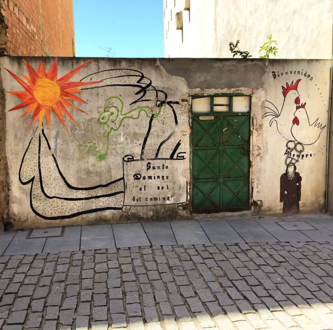 Santo Domingo is a nice town (with great pizza!) though I think many pilgrims walked on to the next town. I took a tour of the cathedral and its museum and said hello to the rooster and hen that live inside the cathedral.