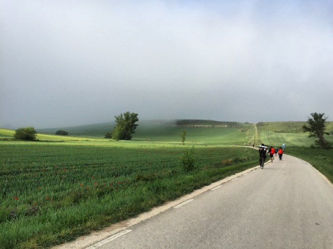 As we came down from the mountain back to farm fields the fog lifted and a nice sunny day appeared. We have been so lucky with the weather! I do think this will change after the Meseta, but I couldn’t have asked for better weather for the past 12 days.