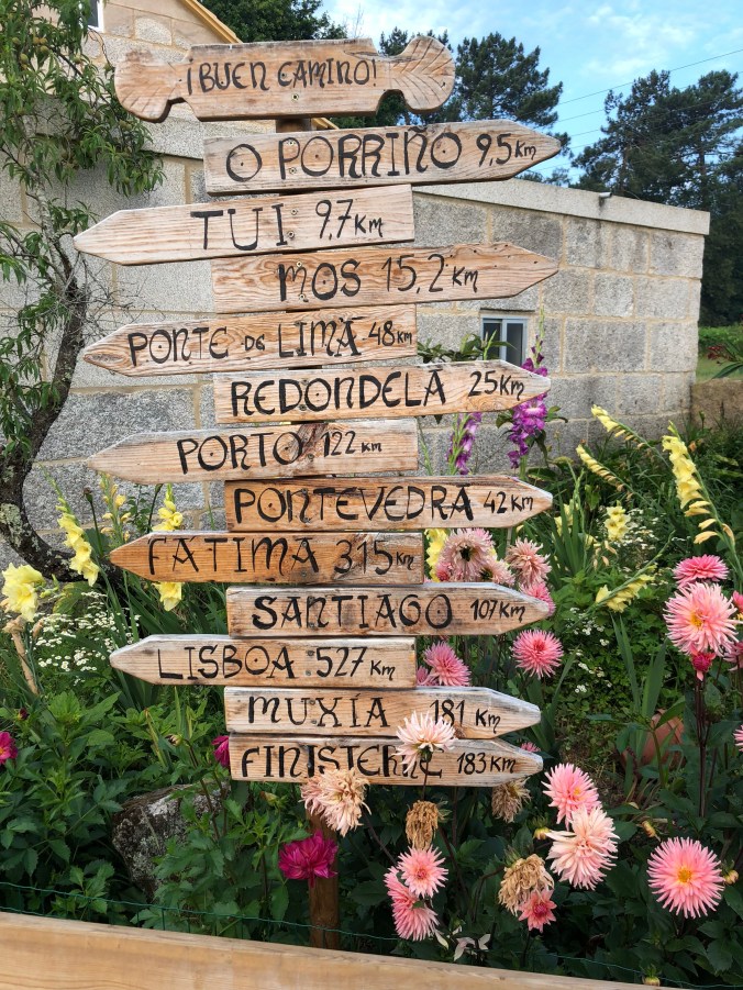We got rained on a couple times but not enough to warrant getting my poncho out. Mostly it was pleasant for walking and taking in the countryside and Camino decorations along the way.