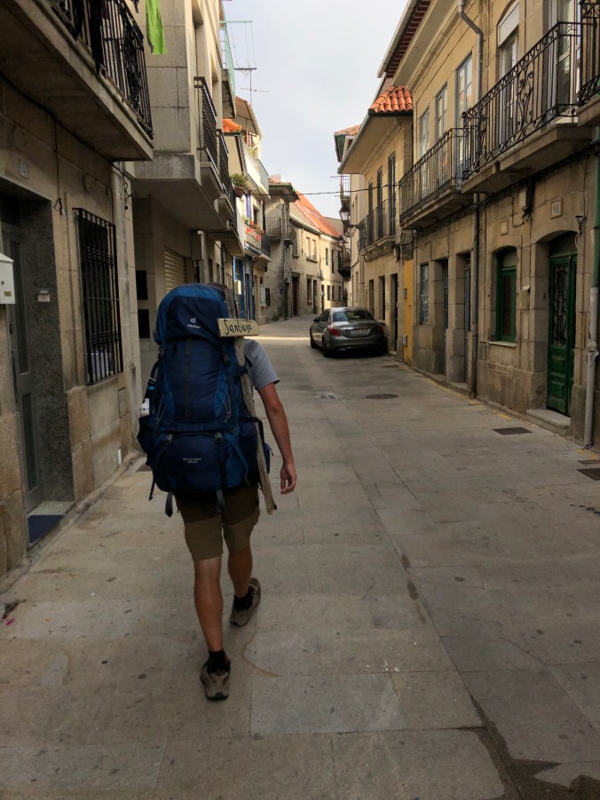 I failed to mention one of the errands we did in Redondela was picking up a couple bottles of wine for our dinner tonight. Just what you need – an extra bottle of wine worth of weight in your bag. 😳 But at least it is Peregrino wine! Oh, and a bag of Ruffles! I don’t eat Ruffles at home very often but I crave them on the Camino.