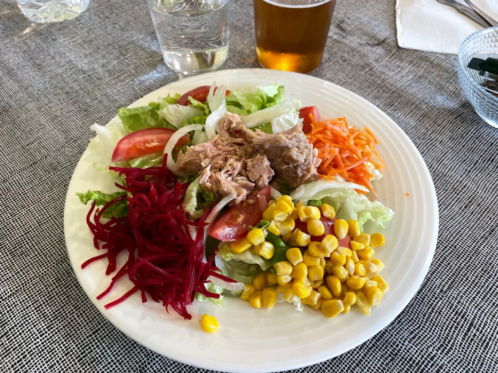 Third course of the meal is dessert, but I’ll see if I can’t explain to host here that I don’t need dessert since I think I’m now officially full after the first two courses. It’s amazing how much you can eat when you burn an average of 4000 calories a day. If only I could get this kind of exercise on a regular basis!