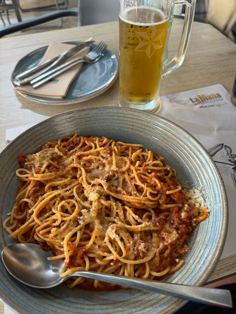 Even though lots of pilgrims meals come with spaghetti bolognese as the starter option, it’s usually not that great. I decided to go to an Italian restaurant in Burgos today to get some good spaghetti. It definitely hit the spot. Good carbo loading for tomorrow’s 30km+ walk.