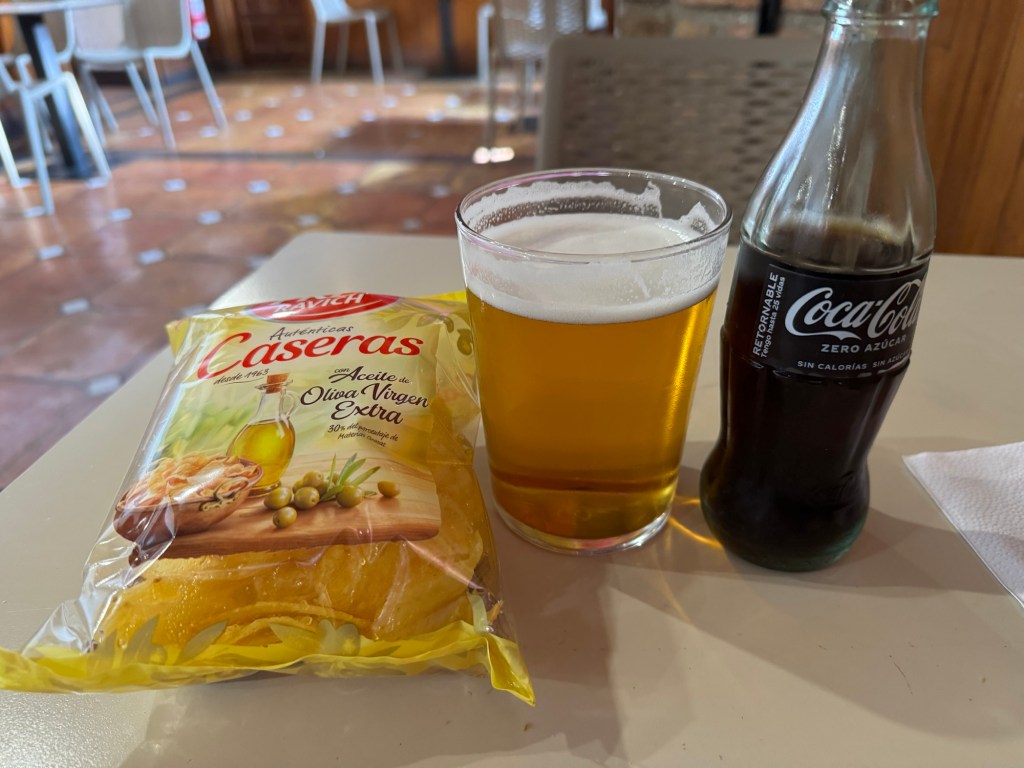 There’s not much in Roncesvalles. But I booked my bed reservation with dinner so at 7, I’ll head to one of the two restaurants in town for my pilgrims meal. For now I’m just enjoying a well deserved beer, Coke and some much needed salty chips.