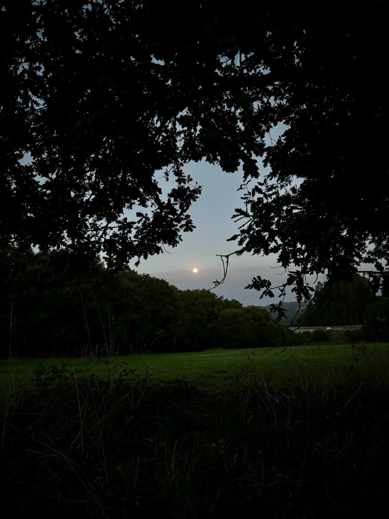 The moon was big and bright when I started this morning. Minus the gals talking very loudly right behind me, it was a peaceful morning to start the walk. I had tried to speed up to get away from those girls, but then they sped up enough to stay right behind me, until I got frustrated enough to let them pass me.